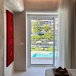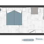 Theros tilbyder 21 værelser som omfatter en terrasse, en balkon og en personlig værdiboks samt en mikrobølgeovn, en el-kedel og et køleskab. Nogle enheder har hav udsigt. Til din komfort finder du en brusekabine og separat toilet.