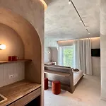Theros מציע 21 חדרים אשר באים עם פטיו, מרפסת וכספת אישית יחד עם מיקרוגל, קומקום חשמלי ומקרר. בחלק מהחדרים האלה ישנו נוף של ים. החדרים מציעים מקלחת בעמידה ושירותים נפרדים בכל חדר אמבטיה.